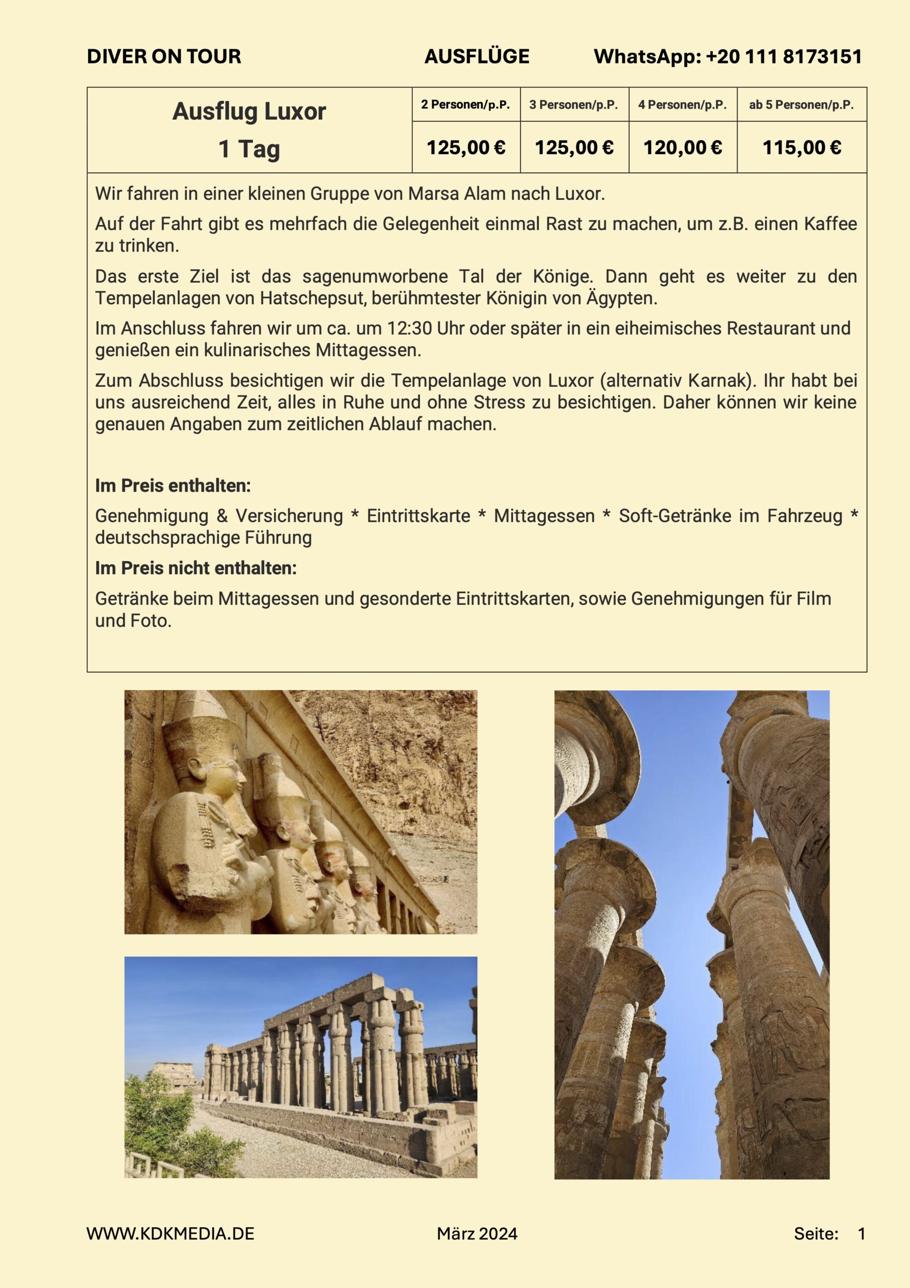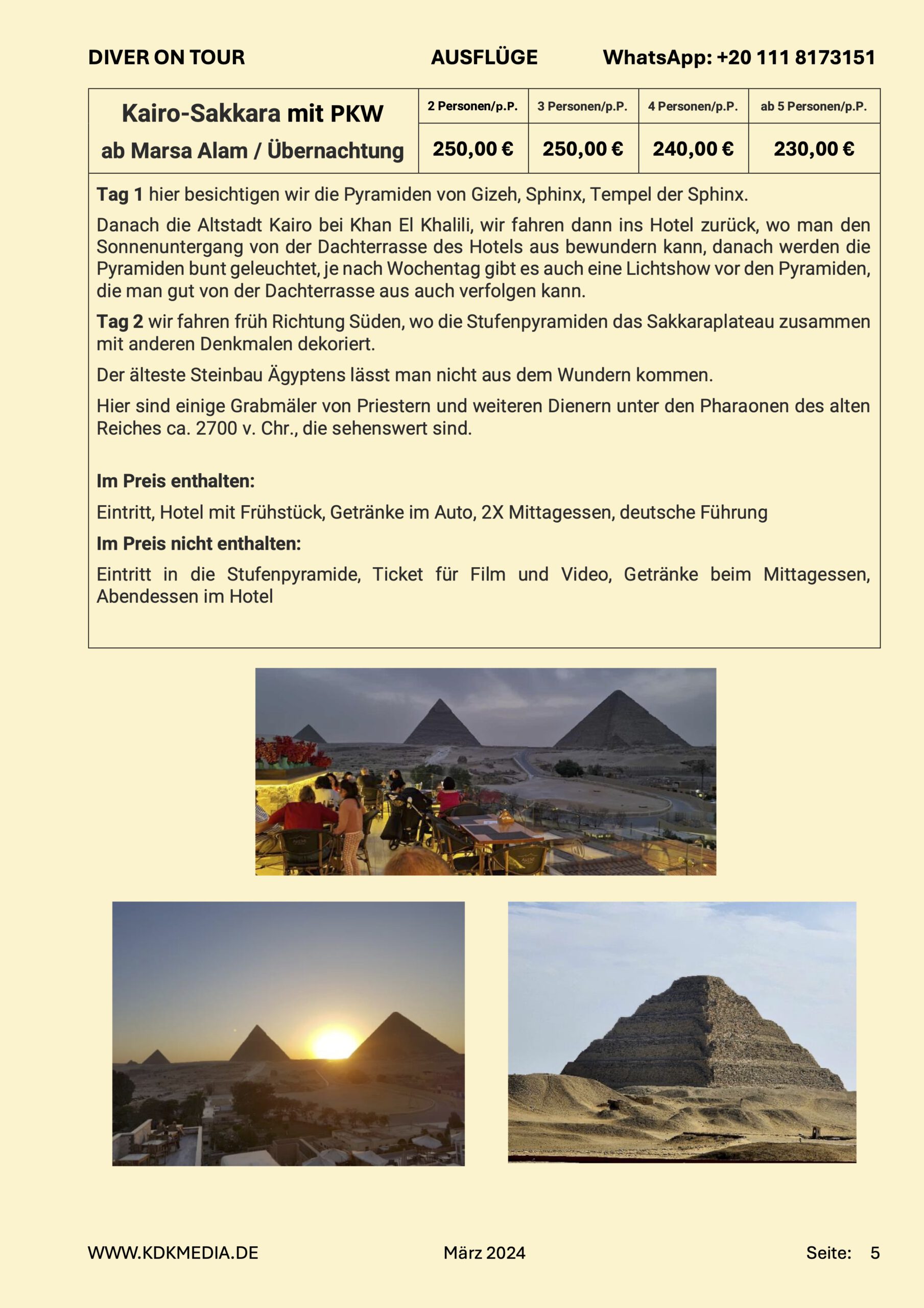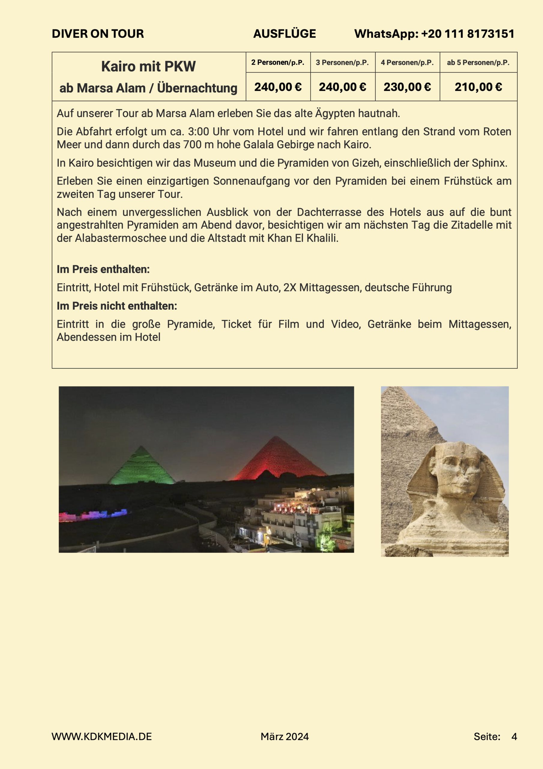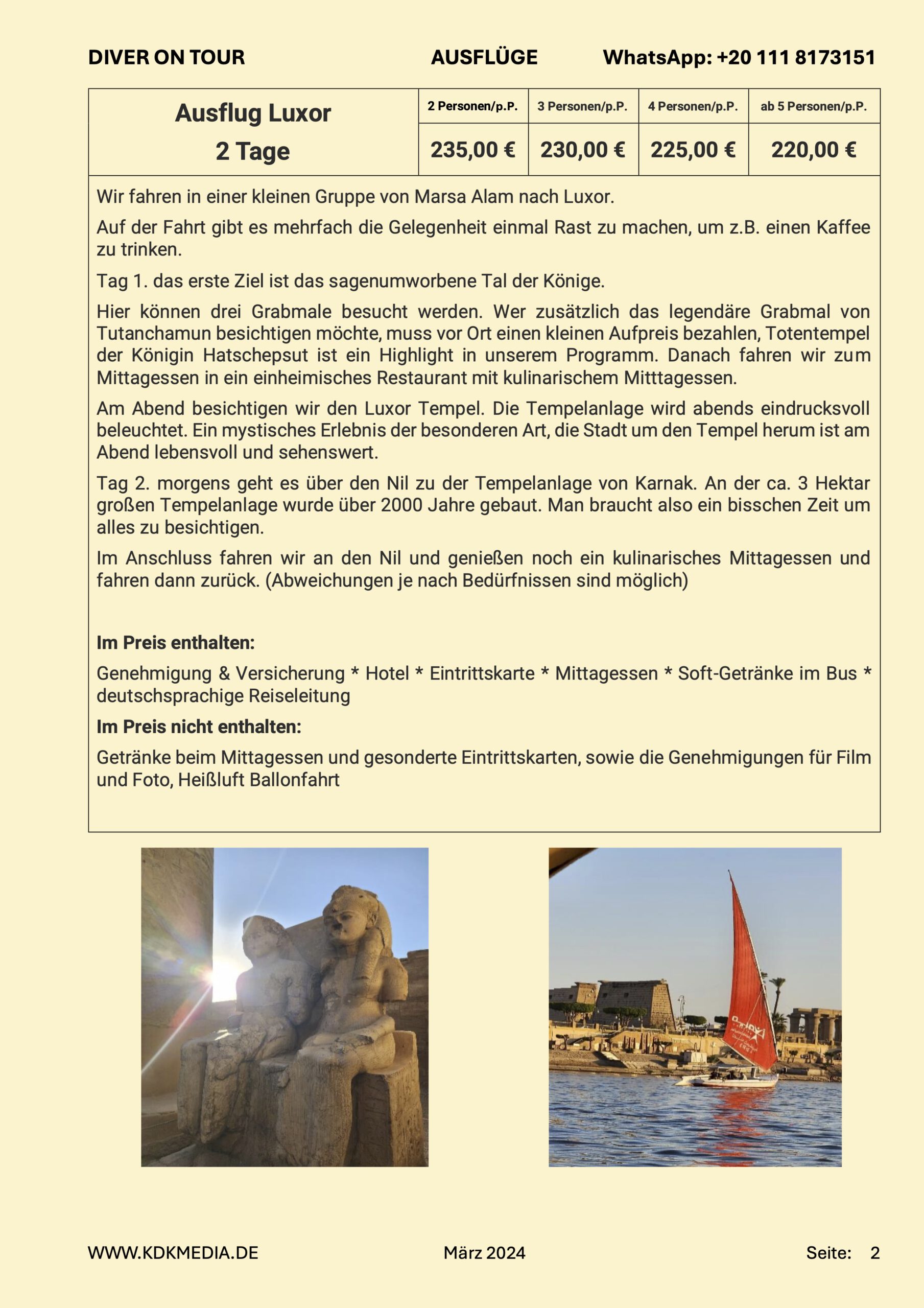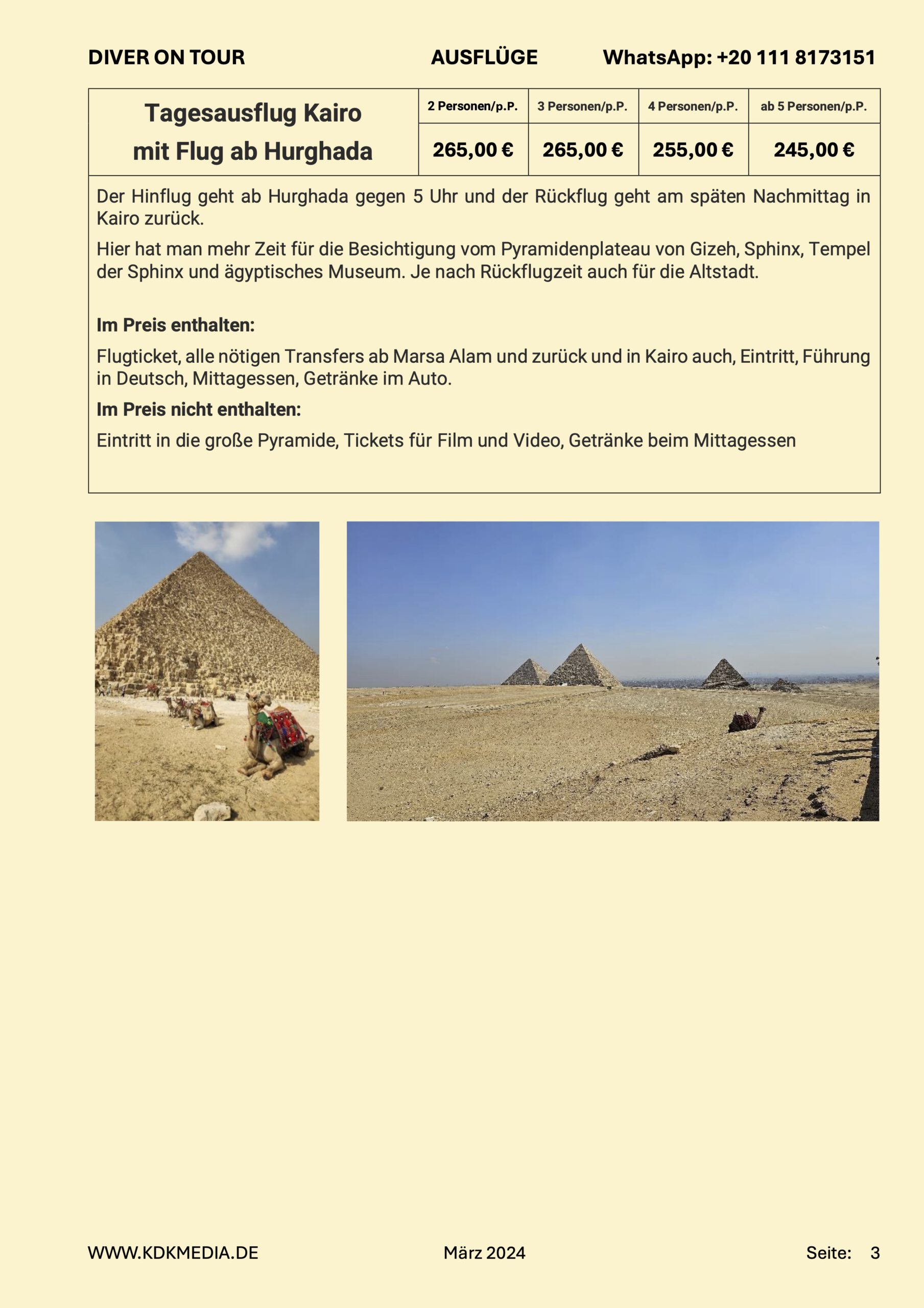 Diver on Tour haben zwei Schiffe in Hurghada und organisieren auf dem Land einige kulturelle Ausflüge.